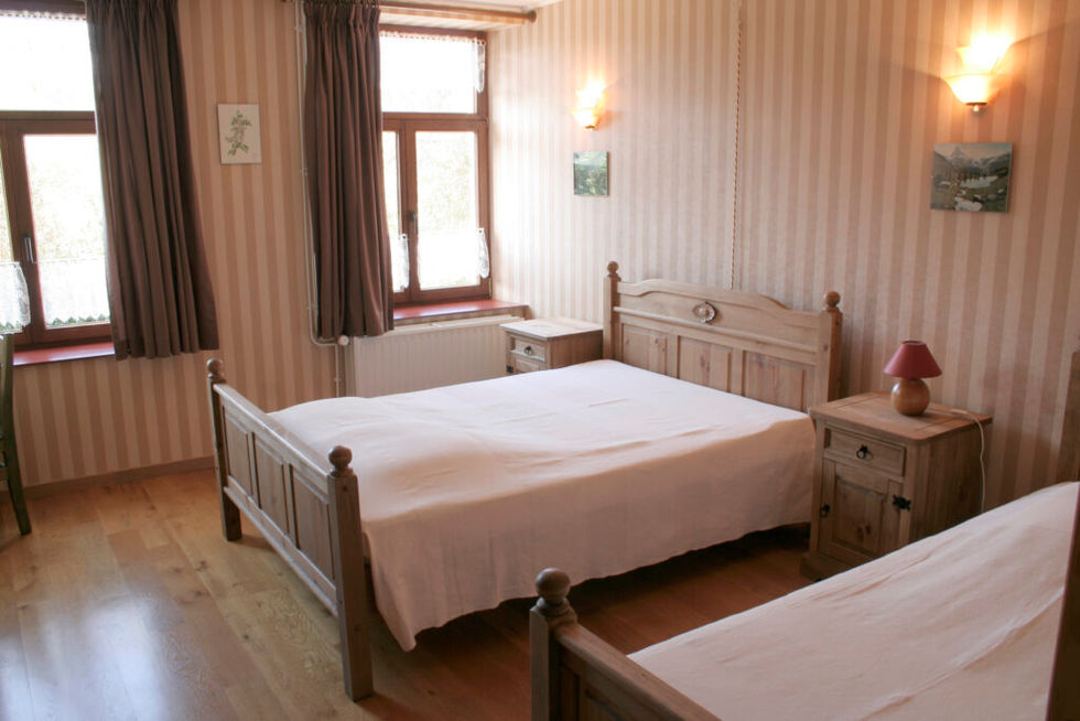 - cinq chambres de 1 à 2 personnes + sanitaires (WC et douches) ;